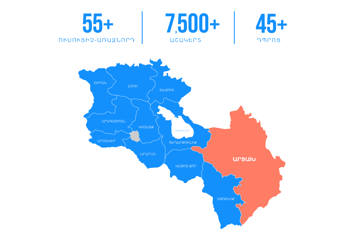 2017-ից մինչև 2023 թվականը մեր Ուսուցիչ-առաջնորդները ծառայել են Արցախի տարբեր համայնքներում՝ սերտորեն համագործակցելով ընտանիքների և դպրոցի ղեկավարների հետ՝ ուժեղացնելու կրթական հնարավորությունները։ Այս աշխատանքը դարձավ մեր տարածաշրջանային երկարաժամկետ հանձնառության հիմքը։
