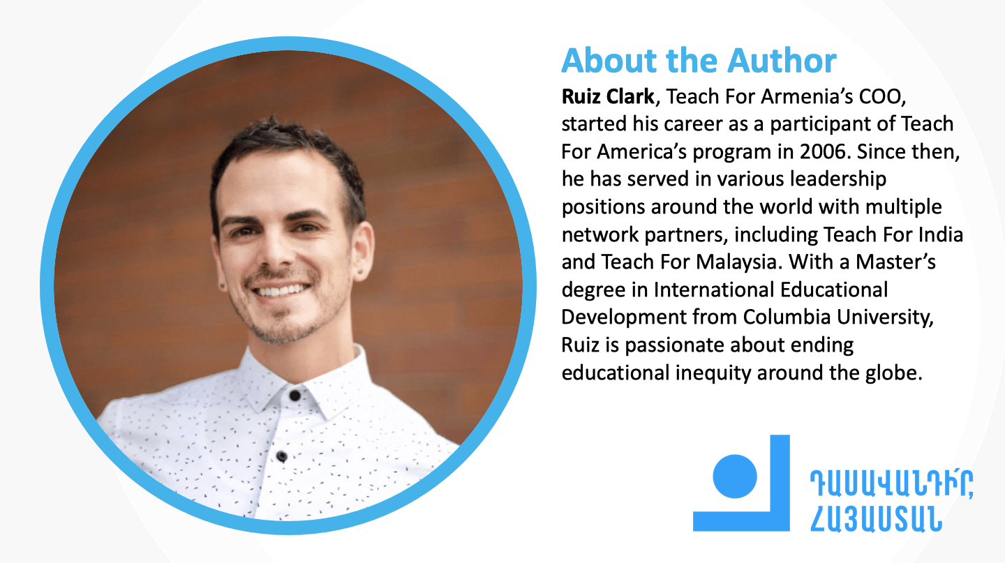 This summer, Teach For Armenia aims to run a Virtual Student Leadership Camp. We have already placed an order for 360 devices so that we can pilot a program that will weave together Change-Based Learning with the national syllabus. Through the camp, students will work in teams as they explore “big ideas” pulled from state-mandated topics. By the end of the camp, the students will then create proposals and record pitches for projects that will spark innovation within their respective communities. Using Teach For Armenia’s Community Impact Fund, we will then award a group of students a microgrant so that they can implement the idea during the coming school year. All of this is being done in alignment with priorities outlined by the Ministry of Education, Science, Culture and Sport in Armenia.